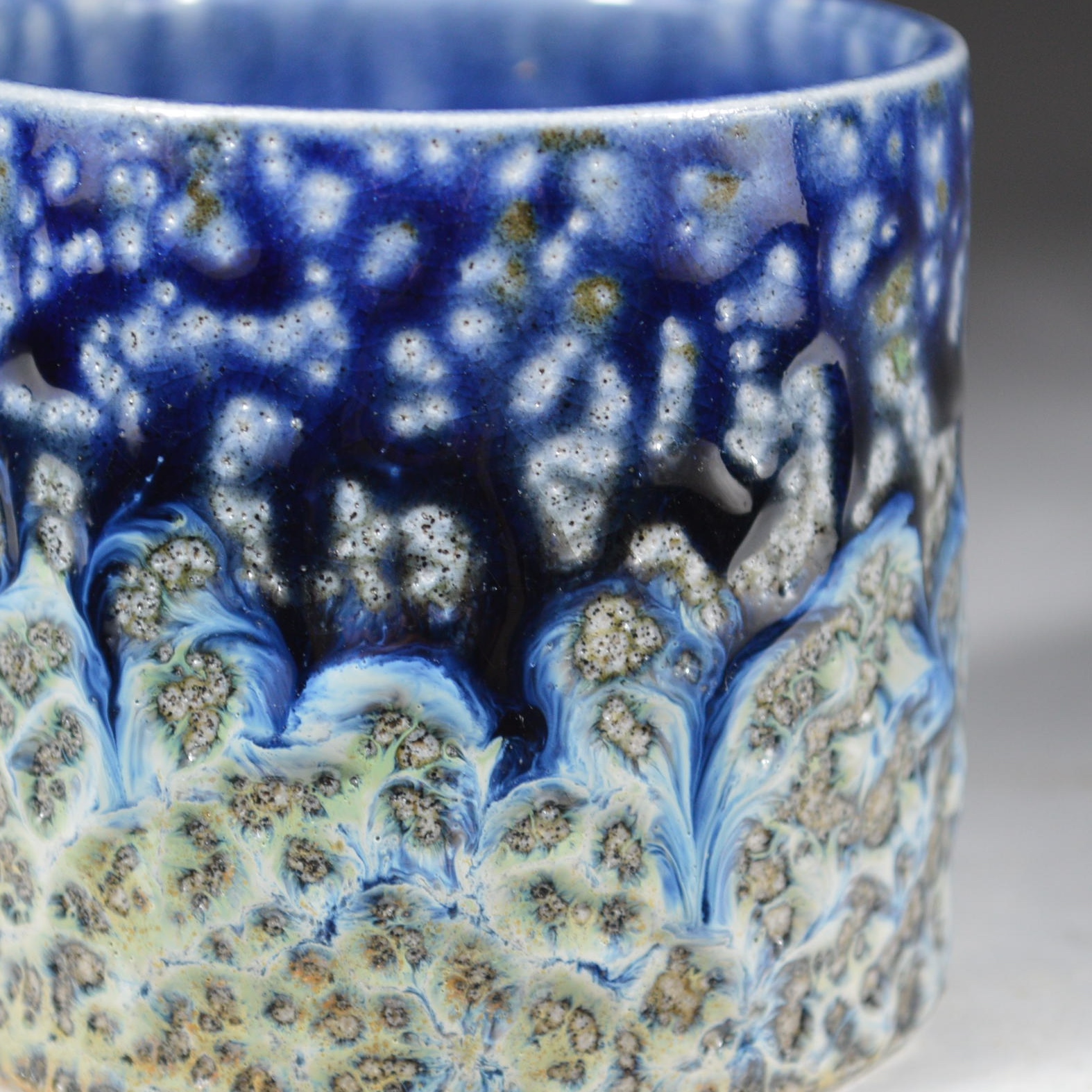 Daniel makes one-off thrown salt and ash glazed stoneware. He explores unconventional firing processes to enrich his thrown pots, which are contemporary and individual.  Vibrant slips and ash glazes are used which encourage the firing process to leave its mark on the ware, developing textures and movement within the fluid glaze, producing unique works to be explored beyond their surface.